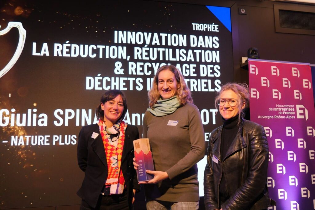 Nature plus Tech remporte le trophée de l’Innovation dans la réduction, la réutilisation et le recyclage des déchets industriels, au Trophées de la RSE 2024 ! Félicitations à Guilia Spina et Anna Mignot pour leur victoire et leur engagement !